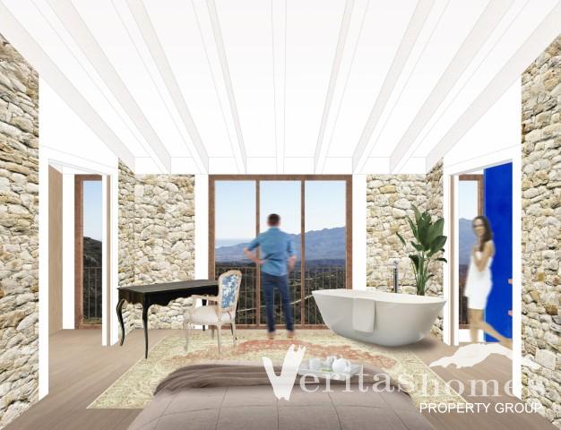 - Casita 1 a une ruine de 2 étages avec une superficie construite de 210m2 (rez-de-chaussée 105m2 et premier étage 105m2). Le terrain est de 448m2 avec trois terrasses dont 105m2 est occupé par le bâtiment.