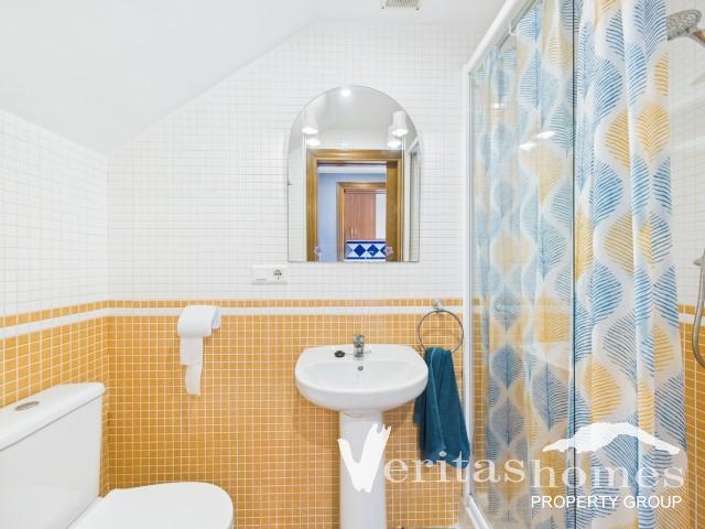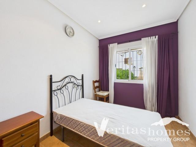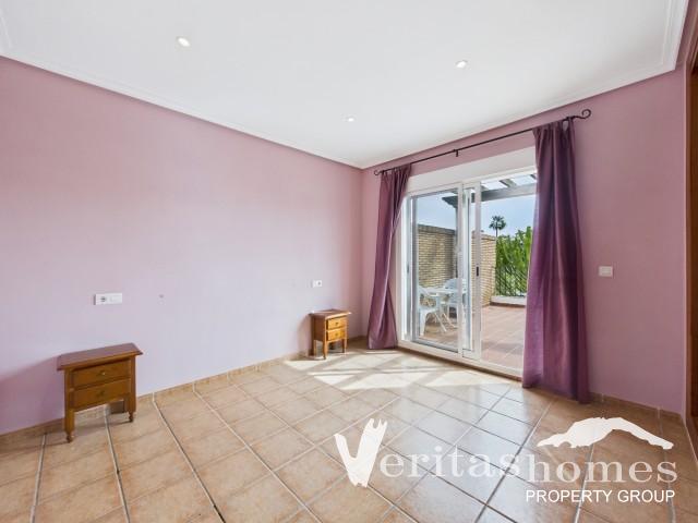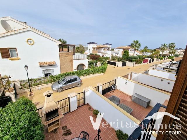 À l'étage, vous trouverez deux autres chambres doubles et une salle de bains spacieuse avec une baignoire d'angle. La chambre principale s'ouvre sur une grande terrasse privée, idéale pour se détendre au soleil. Parmi les autres points forts, citons la climatisation par canalisation, l'éclairage ponctuel, les armoires encastrées et les barres de sécurité sur les portes et les fenêtres du rez-de-chaussée. La propriété bénéficie d'un accès à une piscine commune et à un bassin pour enfants, à des jardins paysagers et se trouve à proximité d'un supermarché, d'une école privée et de la future gare de Vera, ce qui en fait un excellent investissement à long terme ou un lieu de retraite pour les vacances.