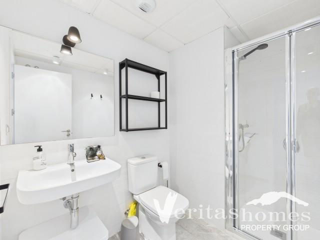 Il y a une cuisine moderne séparée équipée d'un réfrigérateur-congélateur, d'une plaque vitrocéramique et d'un four, d'un micro-ondes et d'un lave-linge. La chambre principale dispose d'armoires encastrées et de la climatisation, ainsi que d'une salle de bains attenante avec baignoire. La deuxième chambre dispose également d'armoires encastrées et de la climatisation. La deuxième salle de bains est équipée d'une douche à l'italienne.
